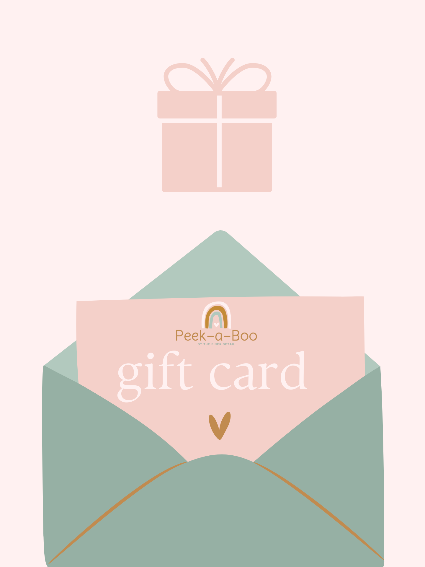 Give the gift of choice and make every mom’s day special with a Peek-a-Boo Gift Card. Perfect for birthdays, baby showers, or just because!