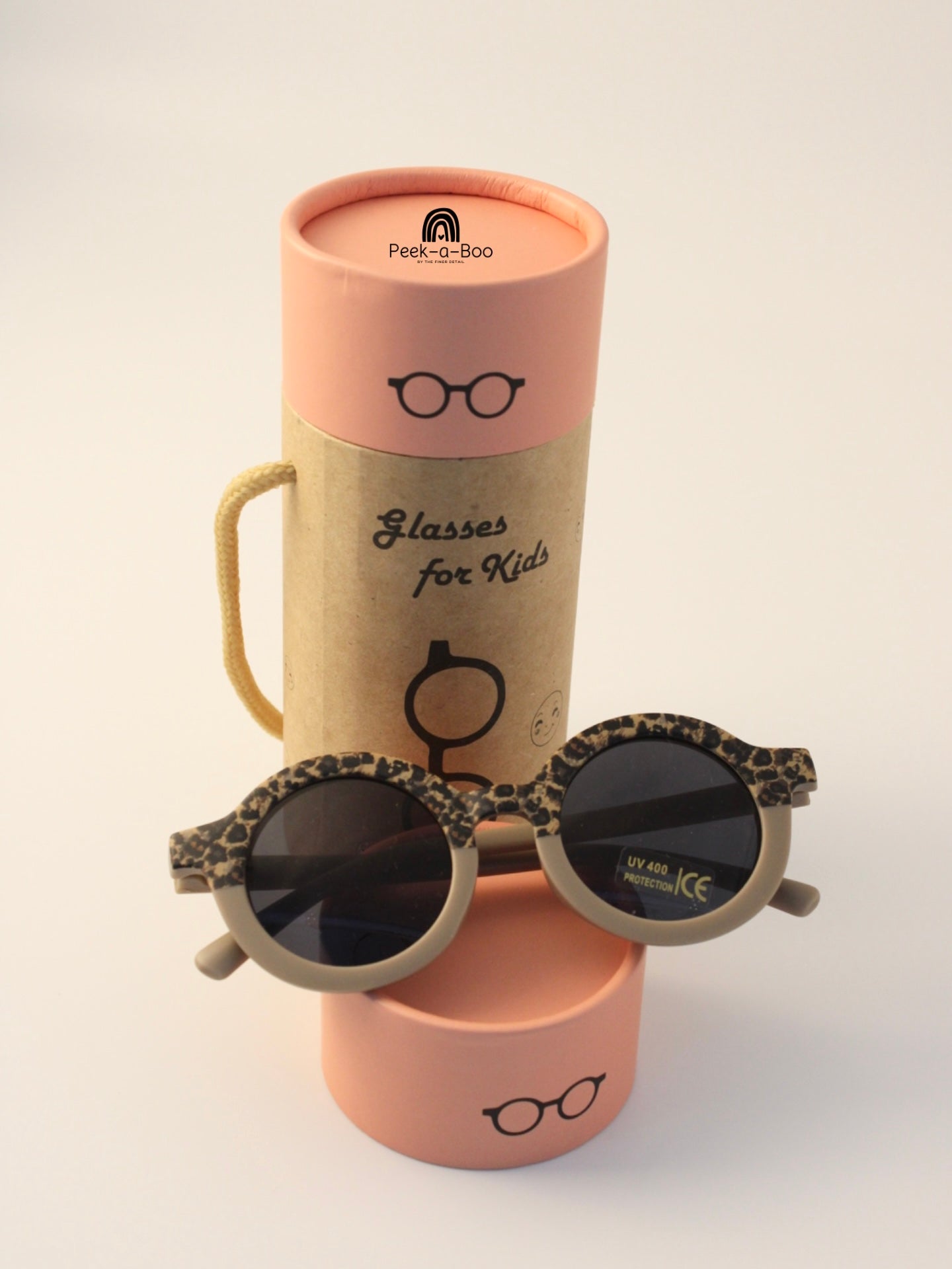 Fashionable leopard print sunglasses for your little one. Eco-friendly kraft case included.