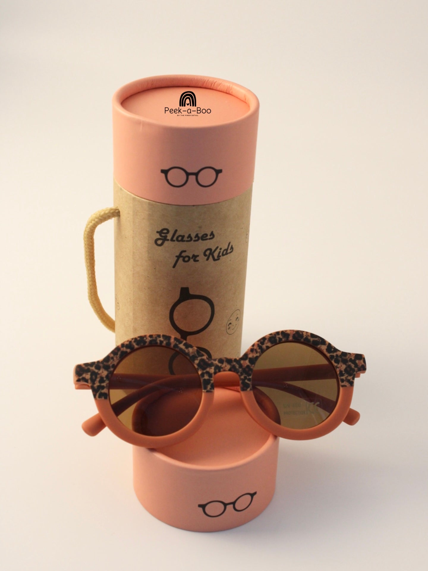 Fashionable leopard print sunglasses for your little one. Eco-friendly kraft case included.