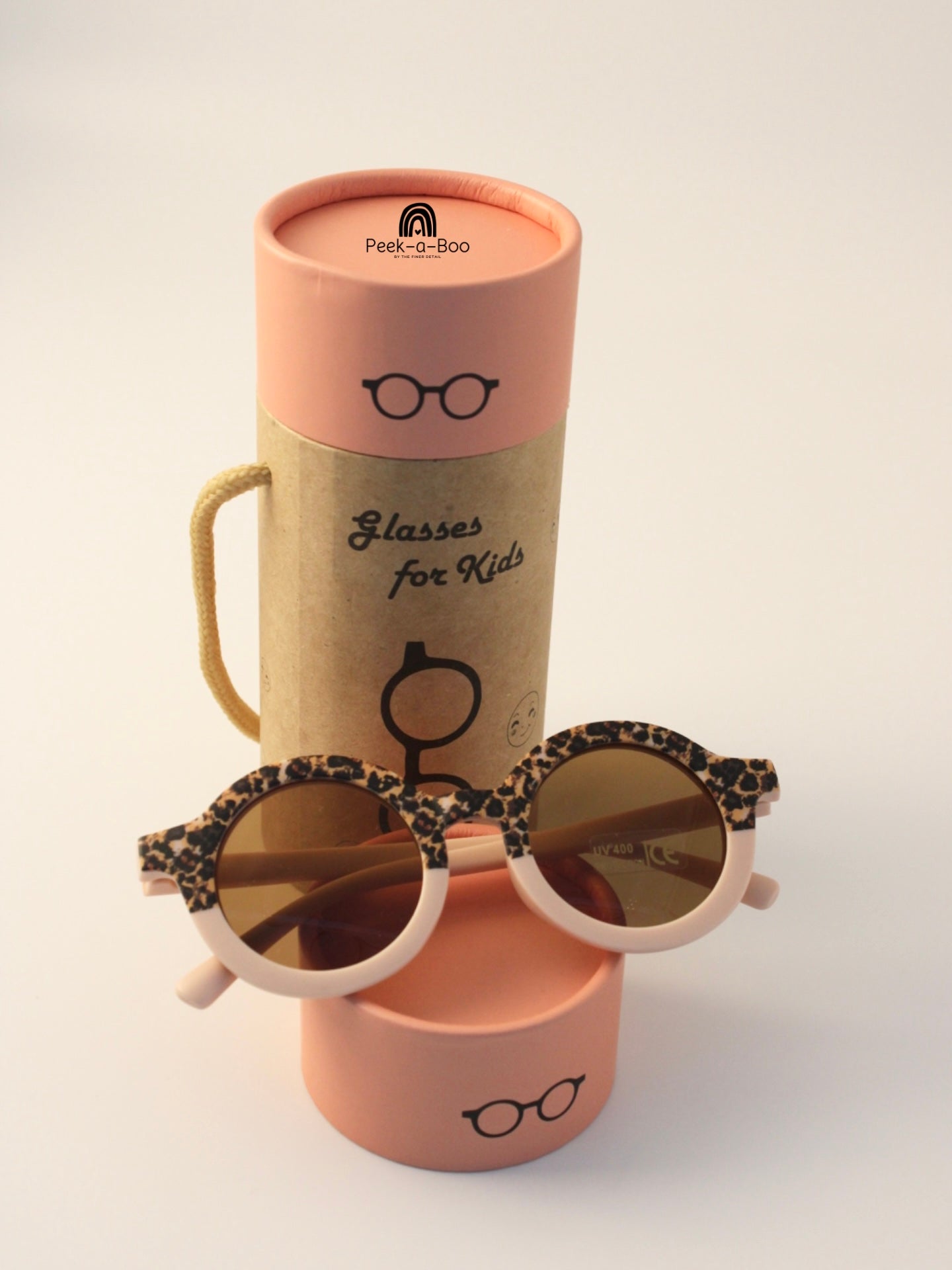 Fashionable leopard print sunglasses for your little one. Eco-friendly kraft case included.
