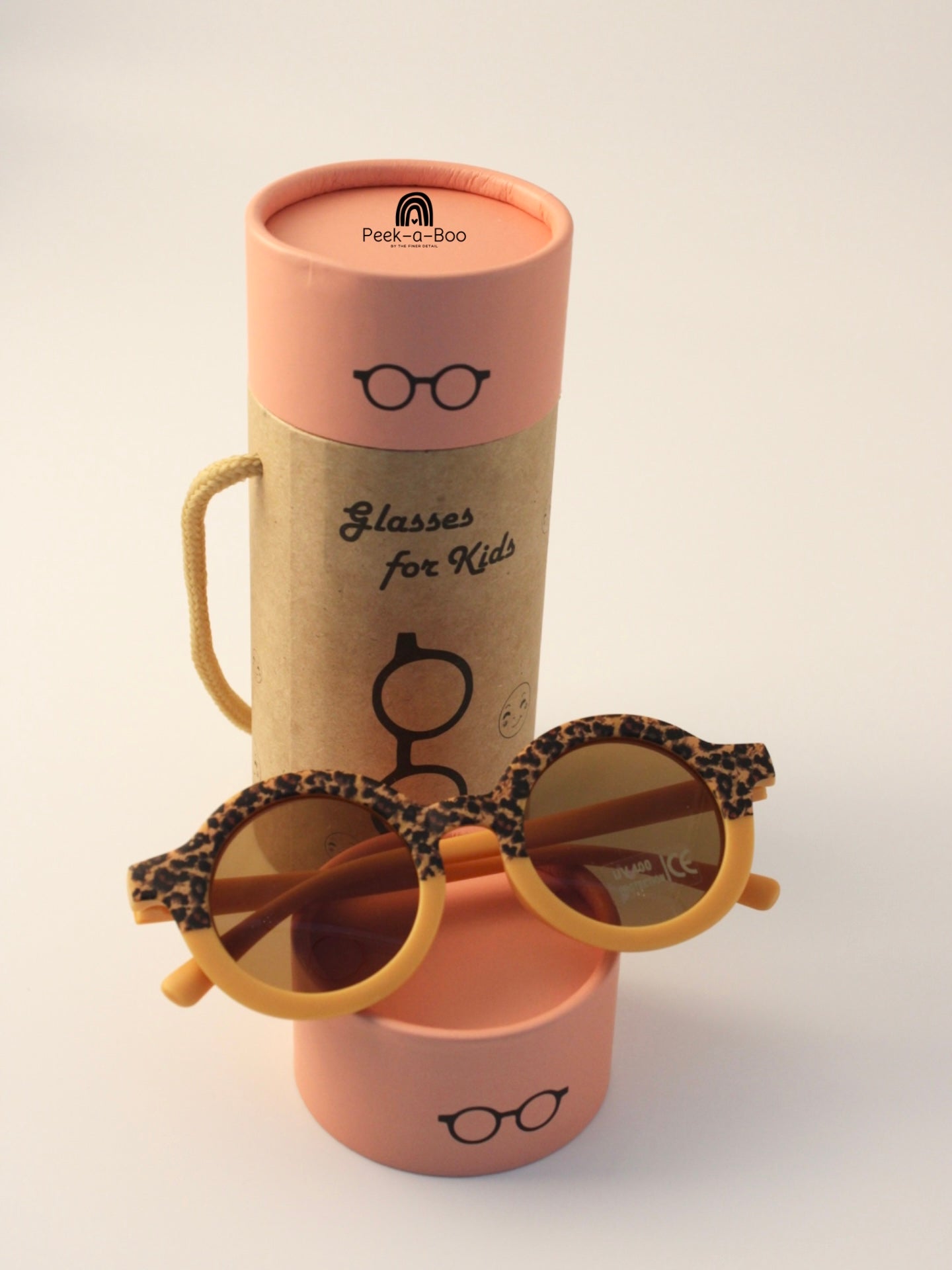 Fashionable leopard print sunglasses for your little one. Eco-friendly kraft case included.