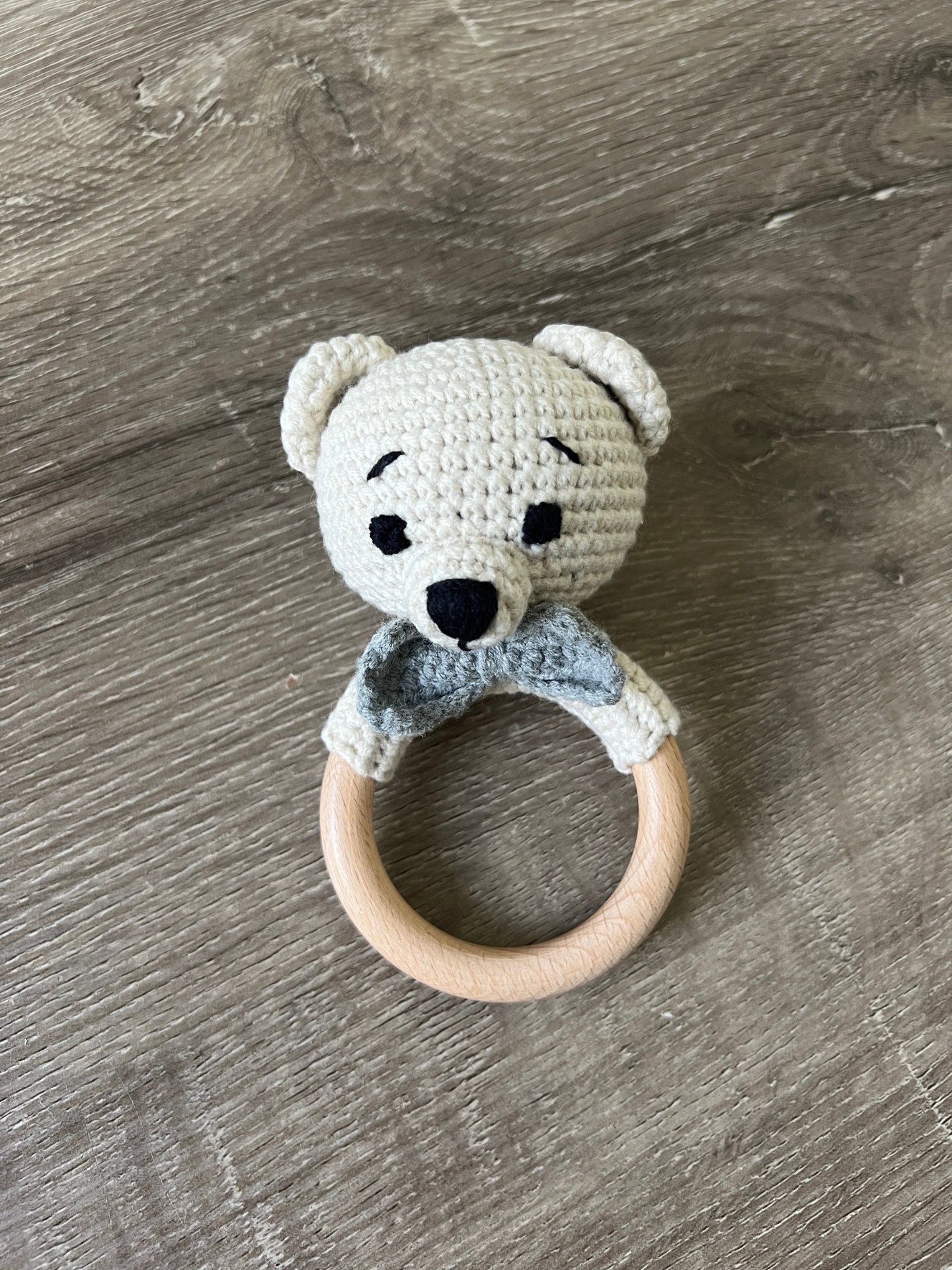 My First Bear Rattle, a meticulously crafted crochet companion for your little one. This adorable rattle not only entertains but also stimulates sensory development and encourages fine motor skills. It's lightweight design makes it easy for tiny handset grasp and shake.