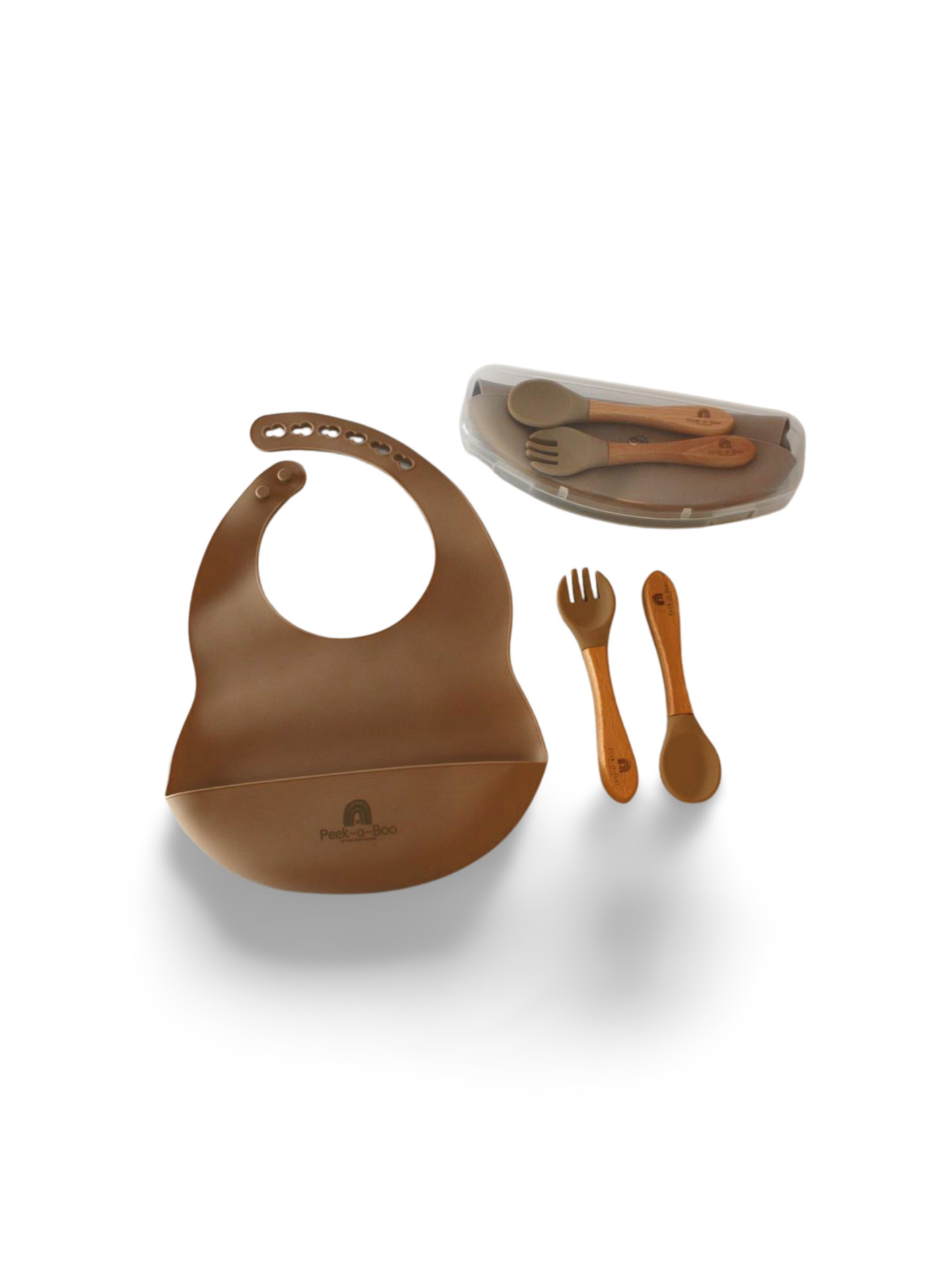 The perfect clear branded travel case includes an adjustable silicone bib, and a fork and spoon set that have soft silicone heads and beechwood handles. Perfect for outings to the restaurant , picnics and so on.