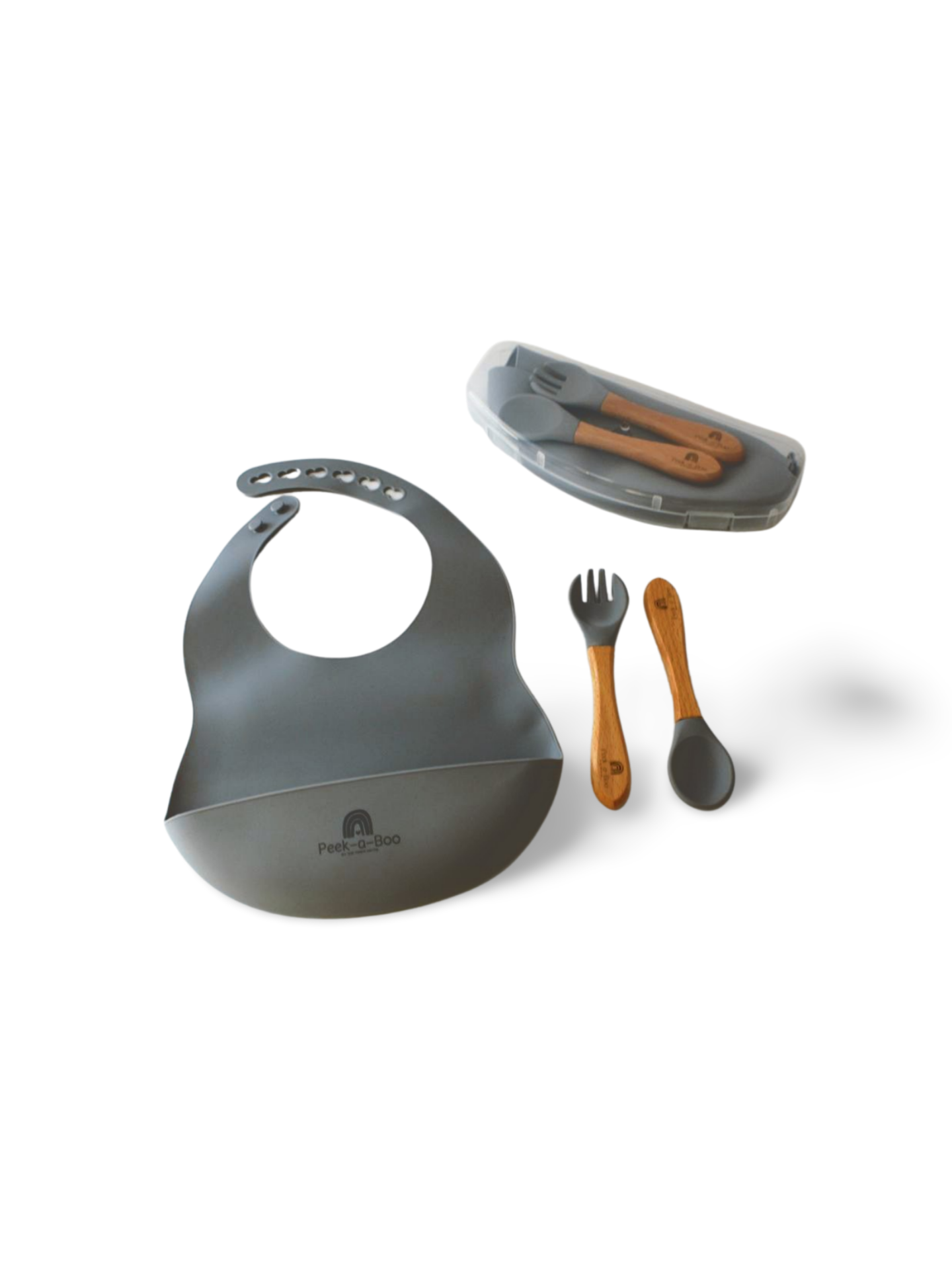 The perfect clear branded travel case includes an adjustable silicone bib, and a fork and spoon set that have soft silicone heads and beechwood handles. Perfect for outings to the restaurant , picnics and so on.