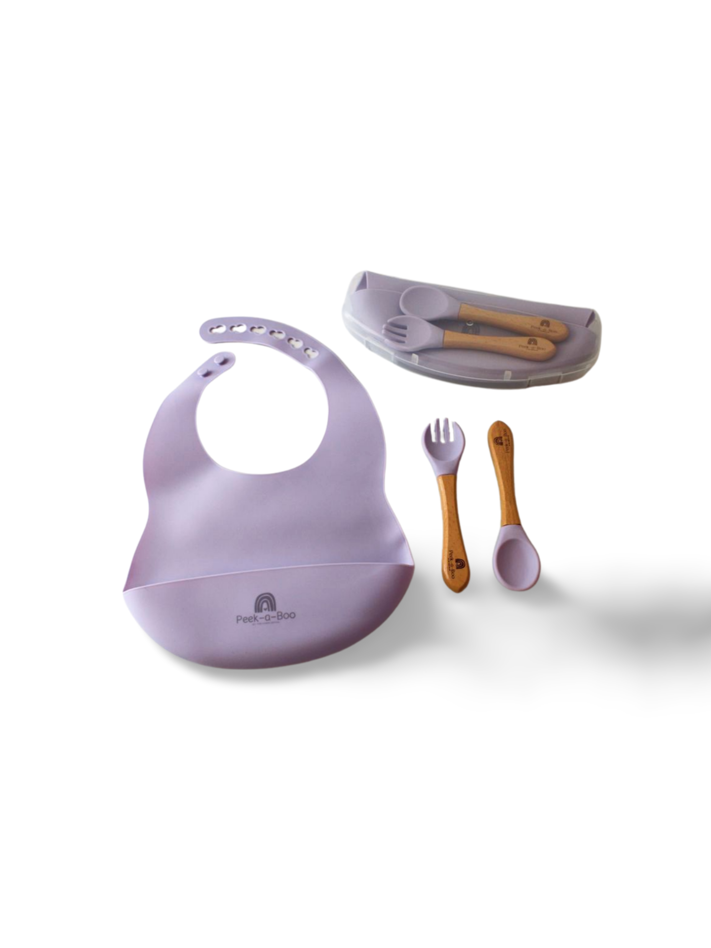 The perfect clear branded travel case includes an adjustable silicone bib, and a fork and spoon set that have soft silicone heads and beechwood handles. Perfect for outings to the restaurant , picnics and so on.